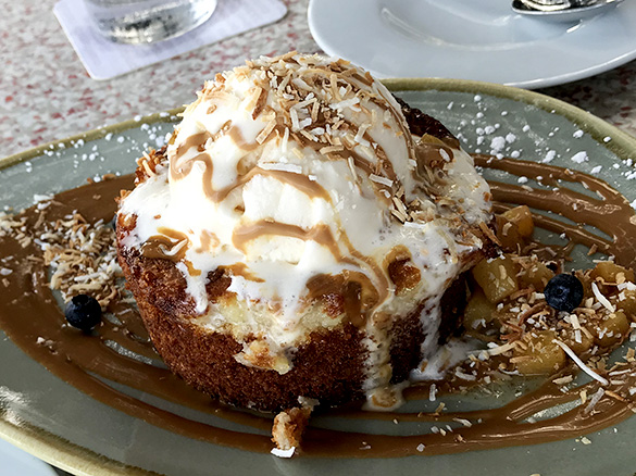 Postre en Coasterra Publicado el 28 abril, 2019 a 585 × 438 en RESTAURANTE COASTERRA Postre de bizcocho húmedo de piña con helado de coco en el restaurante Coasterra