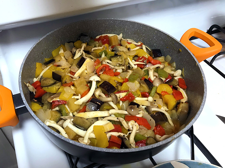 Verduras con setas Publicado el 9 mayo, 2021 a 750 × 563 en HOJALDRE DE VERDURAS Y CARNE DE COSTILLA Cazuela baja, sobre cocina, con verduras rehogadas o pisto